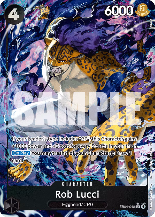 Rob Lucci (EB04-048) 50 kr I lager Lägg i varukorg Artikelnummer: EB04-048-2 Leverantör: One Piece Dela Produktbeskrivning Recensioner Skicka: NMRarity: Super RareFoil: Ja